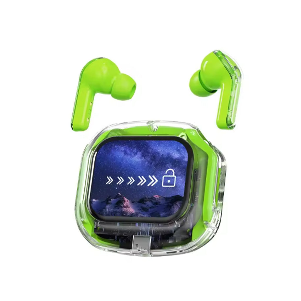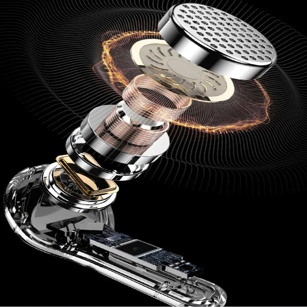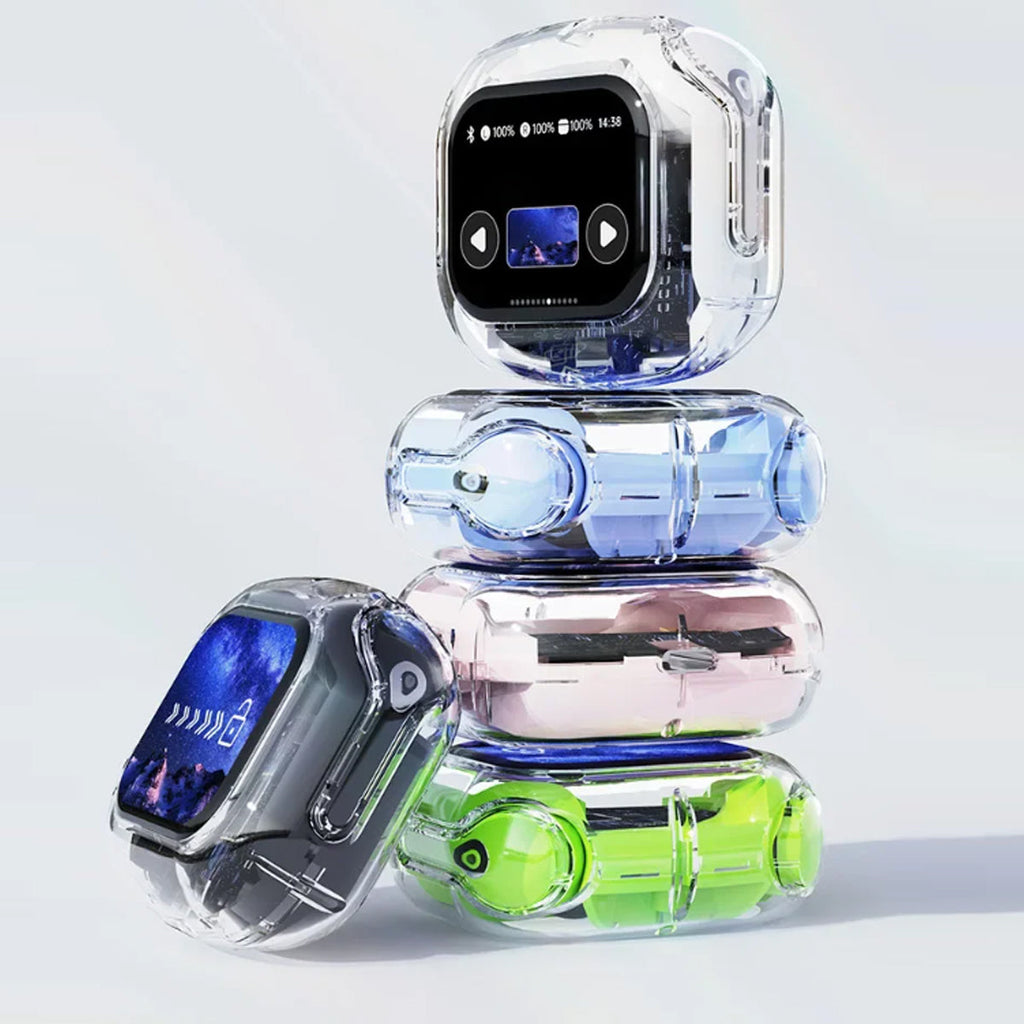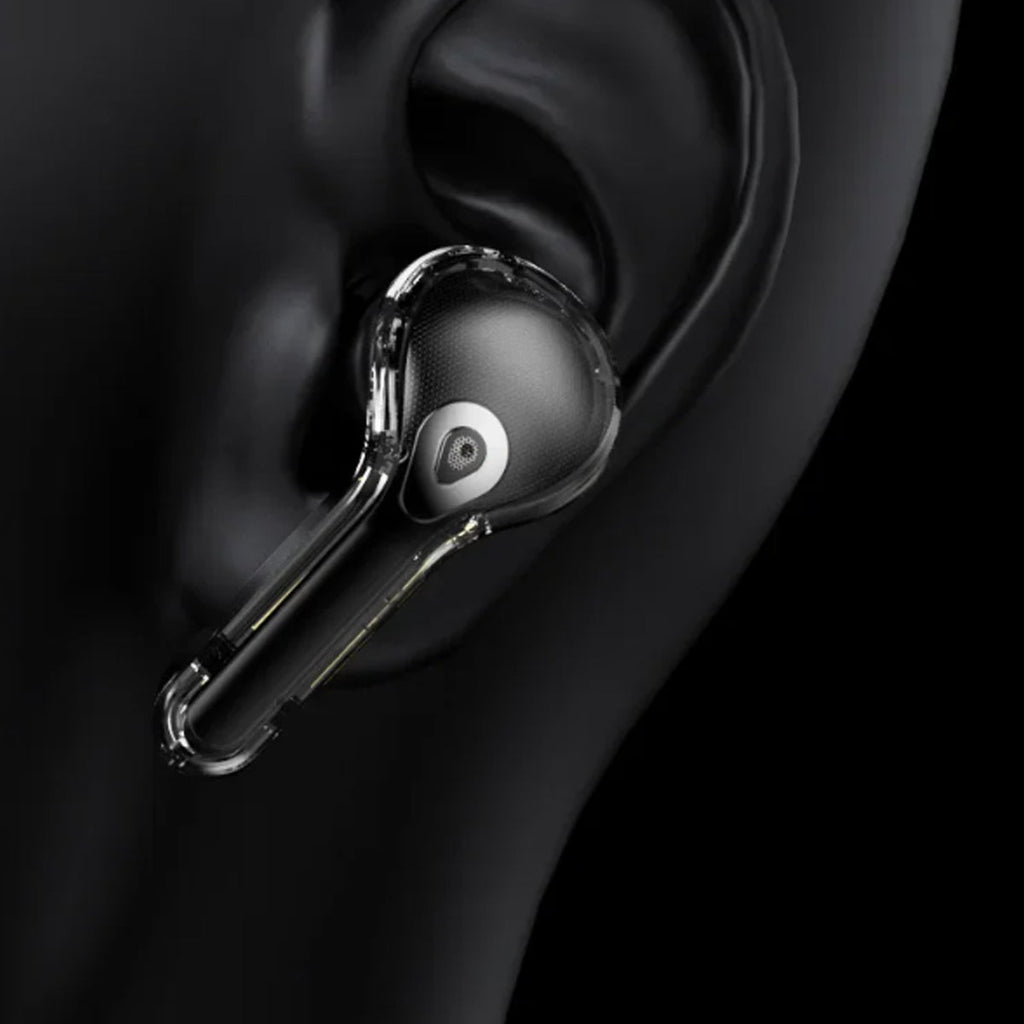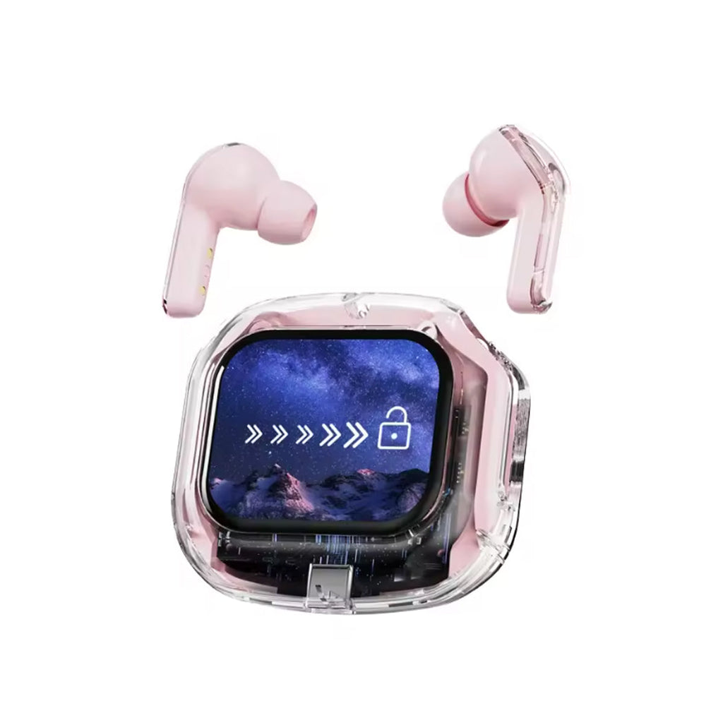 Experience next-gen audio with these futuristic, transparent wireless Bluetooth headphones, featuring a sleek touch screen and digital display. With many benefits and stylish appeal, its elegant, futuristic interface lets you control volume, playback, and modes with just a tap. No buttons, no hassle — just smooth touch navigation. Open the case, and you’re instantly connected, enabling seamless syncing with Android & Apple devices. You can enjoy deep bass, crisp highs, and an immersive stereo sound experience. Engineered for both music lovers and audiophiles. The real-time power level is displayed on the digital screen, so there's no more guessing how much juice is left. It is also designed with a faster, stronger, and more stable connection, featuring ultra-low latency, which is ideal for music, gaming, and video. It's built-in mic with noise-reduction feature keeps your voice sharp and clear during calls or voice commands. Ergonomic and secure for active use as well, whether you’re at the gym, running, or on the move.